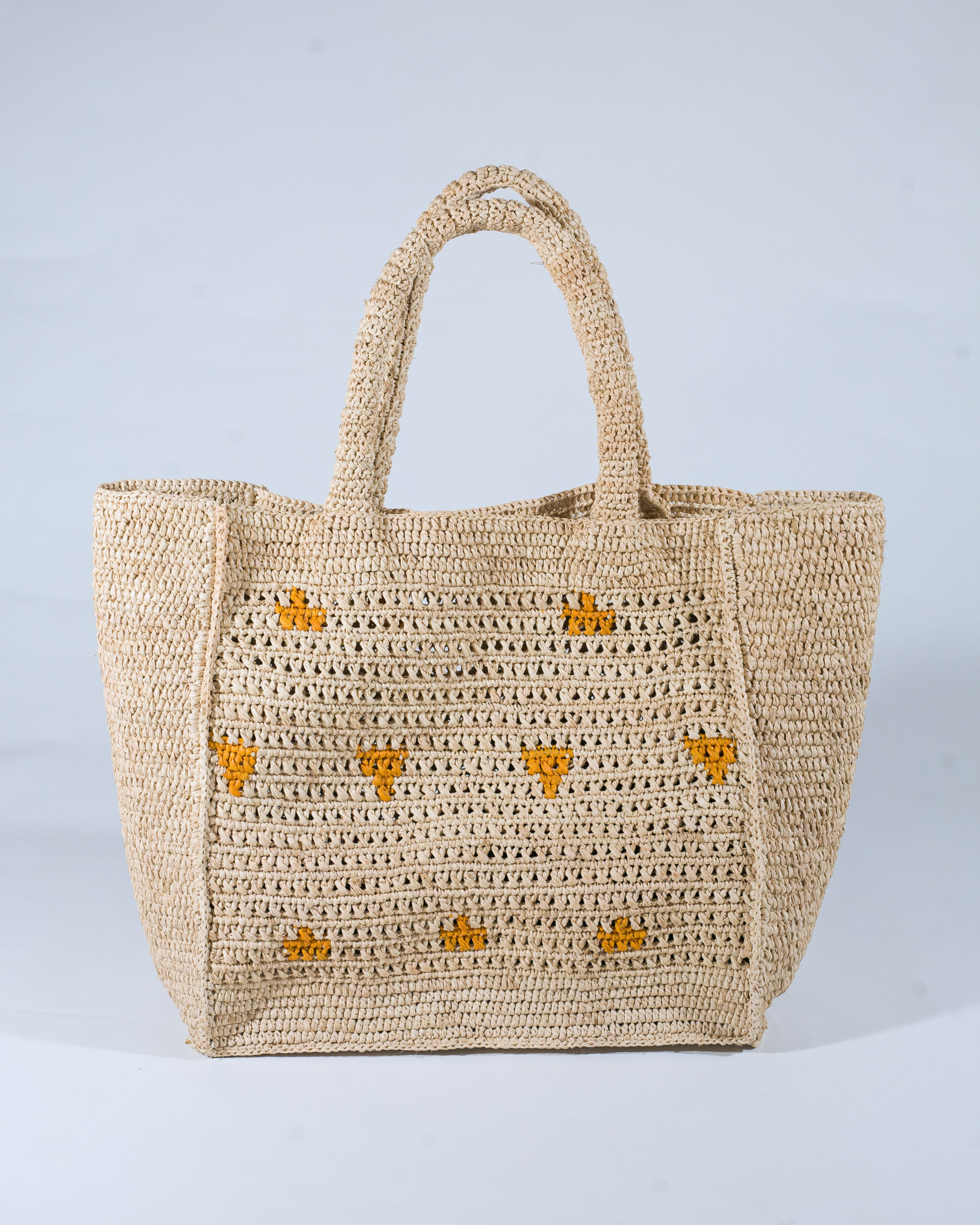 We end this journey with a singular piece full of charm: Mendrika. More compact (25cm x 18cm x 2cm for 0.200 kg), it features a hand-embroidered flap in colorful raffia, customizable to your heart’s content.